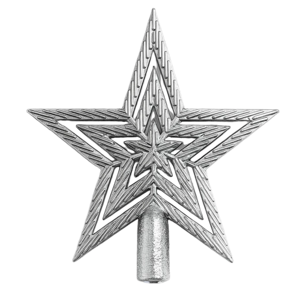 Estrella para punta de árbol 10x10 Ideal para decorar tu árbol de Navidad con un toque clásico y elegante. Esta estrella de 10x10 cm está diseñada para encajar perfectamente en la punta del árbol, brindando un acabado sobresaliente y festivo.