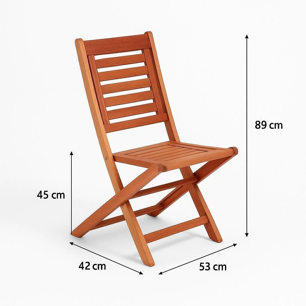 Silla plegable de madera eucalipto, terminación dos capas transparentes de poliuretano apto exteriores.